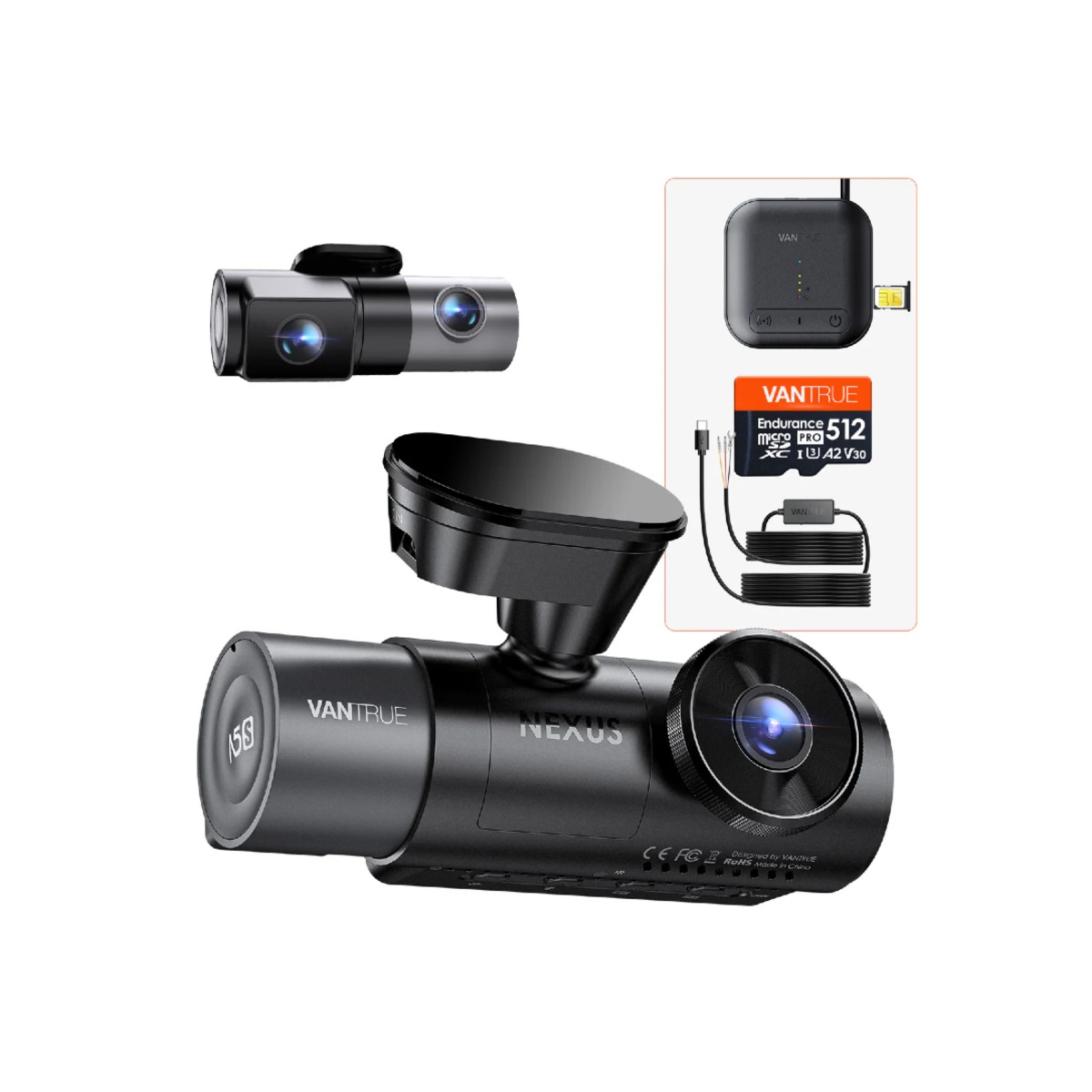 Vantrue N5S Bundle: N5S + 4G LTE Module + VP03 Hardwire Kit + 512GB Card