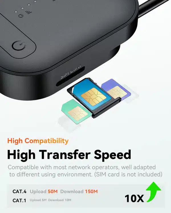LTE Category 4 Speed: Up to 150Mbps(Download) / 50Mbps (Upload)