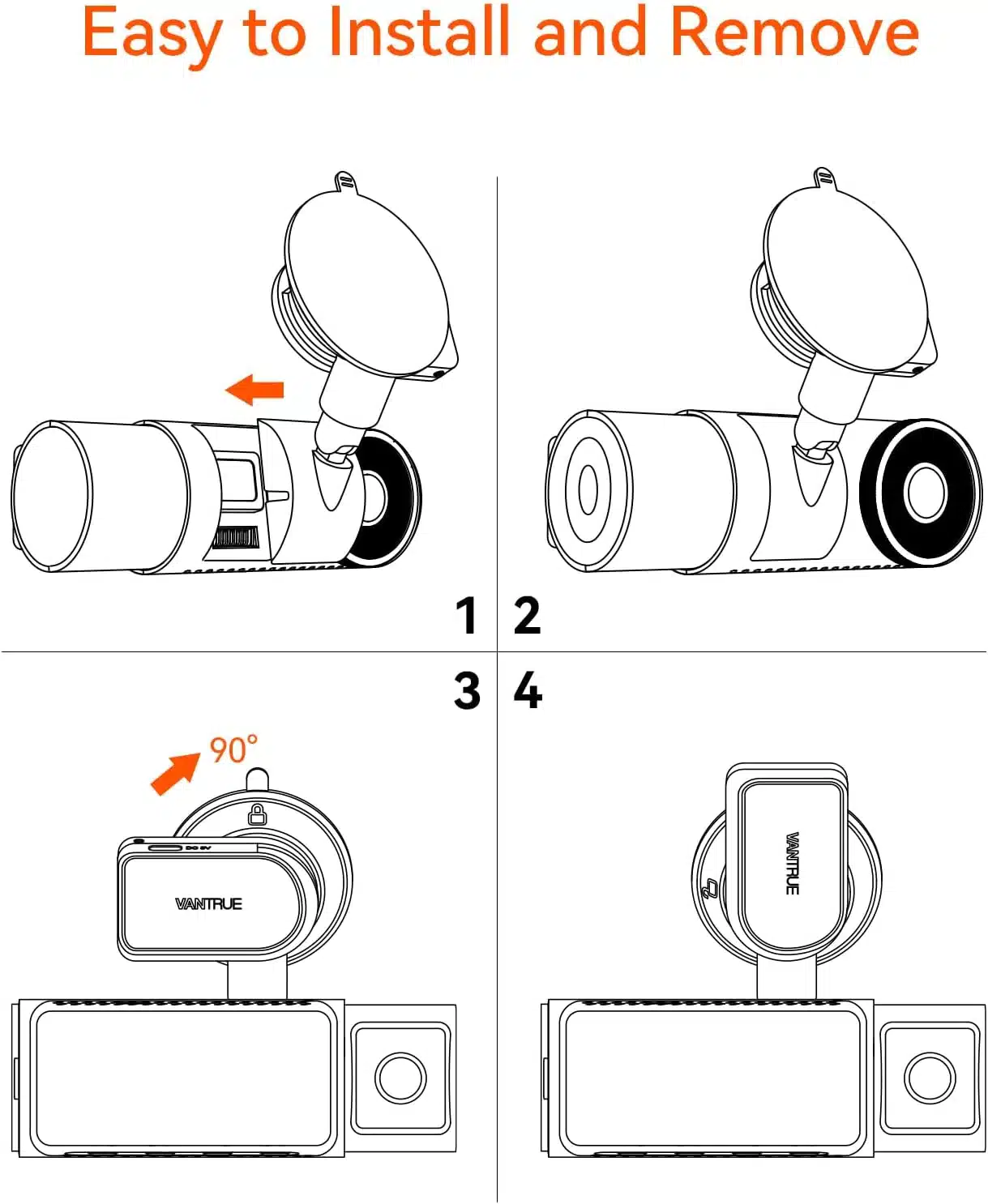 The slide mount system allows you to remove the dash cam for storage or travel easily, and you can remove the suction cup mount without damaging your window.