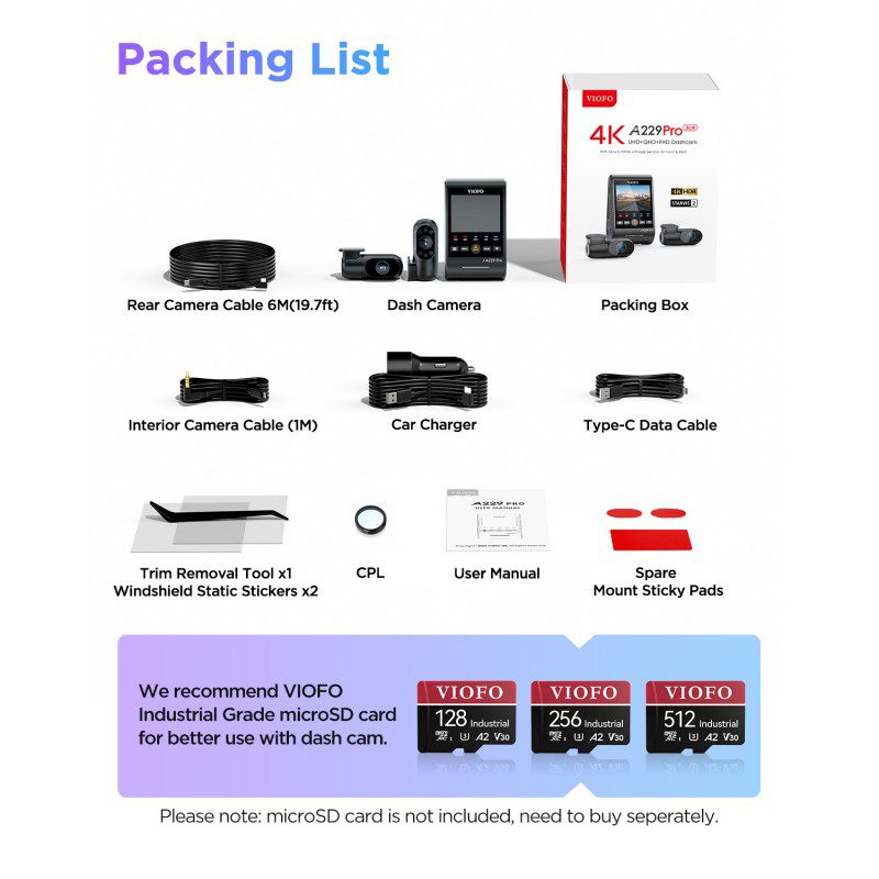 Viofo A229 Pro 4K 3 Channel Dash Cam
