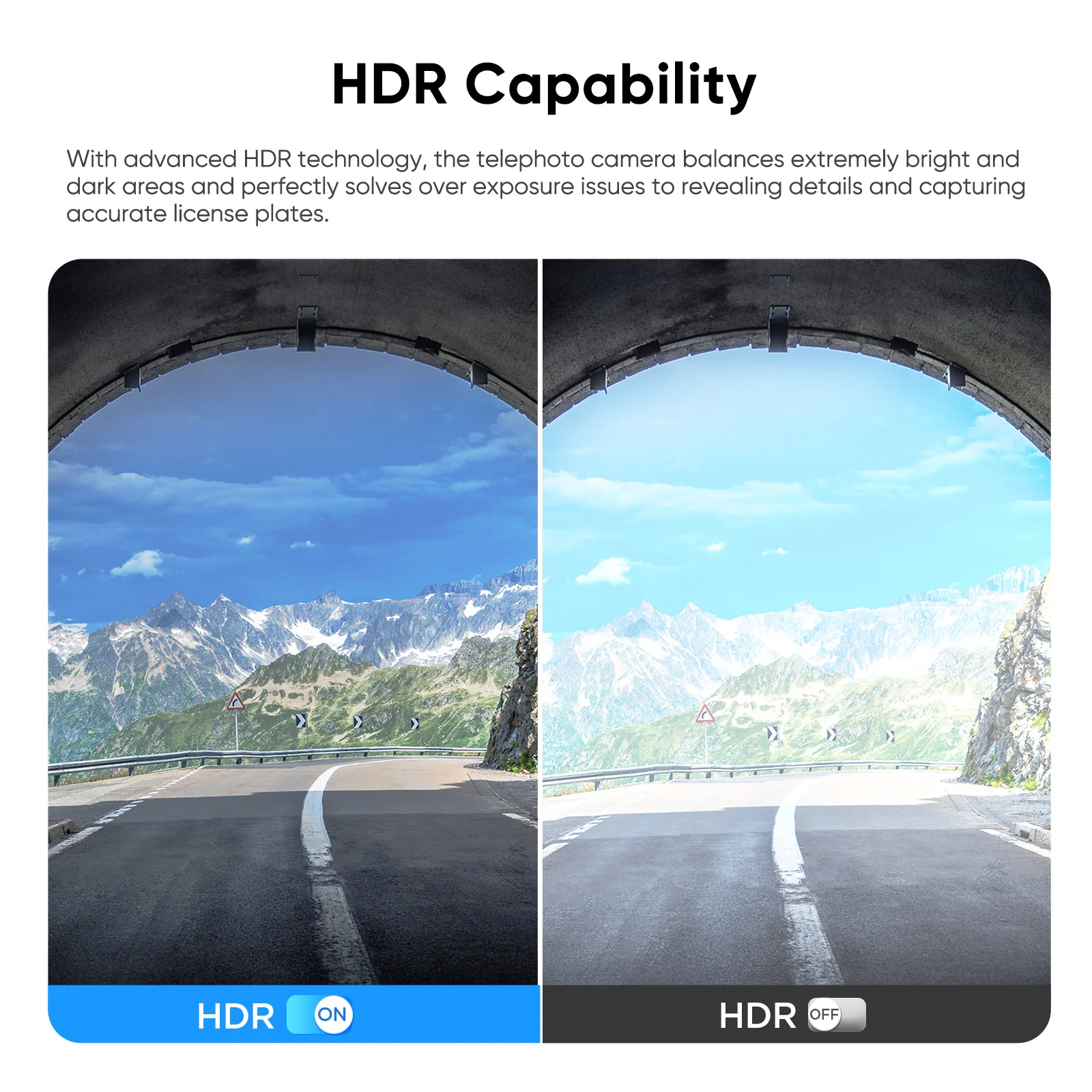 With advanced HDR technology, the telephoto camera balances extremely bright and dark areas and perfectly solves over exposure issues to revealing details and capturing accurate license plates.